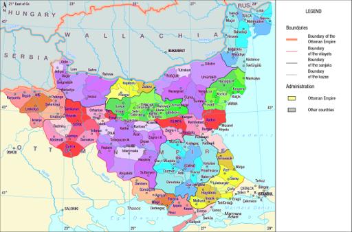 Map 13a : Kaza-level administrative map of Tuna and Edirne Vilayets after 1878