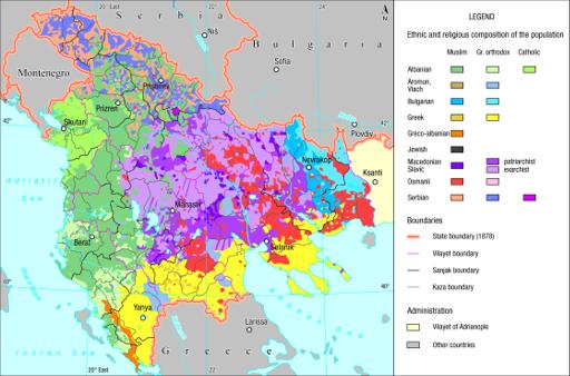 Map 22 : Ethnographic patch map of Macedonia, cca. 1900 (Austrian version)
