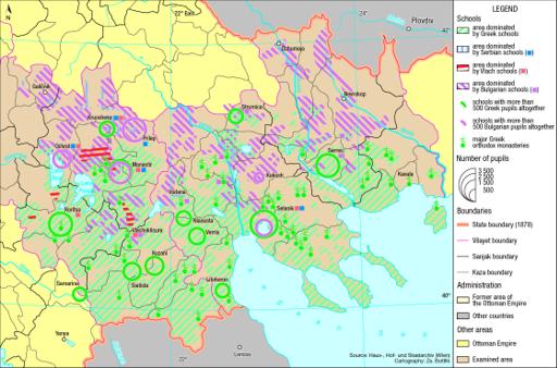 Map 27 : Churches and schools in Macedonia, cca. 1900 (based on Phocas-Cosmetatos)