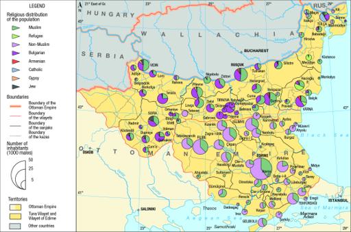 Map 36 : Ethno-religious distribution of the urban population in Tuna and Edirne Vilayets, cca. 1874