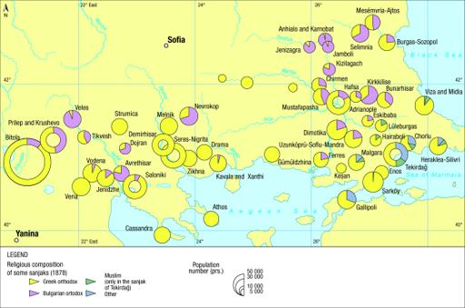 Map 37 : Religious distribution of the Christian population in Macedonia and Thrace (Syllogos and the Greek Patriarchate, 1878)