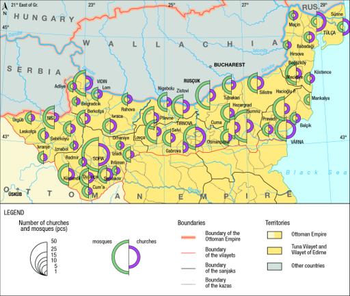 Map 41 : Churches and mosques in the towns of Tuna Vilayet, 1876
