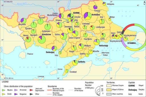 Map 45 : Ethnic distribution of the population in Edirne Vilayet, cca. 1881