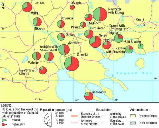 Map 49 : Religious distribution of the population in Saloniki Vilayet in 1880