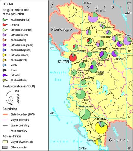 Map 60 : Ethnographic data on Albania and the sanjak of Novipazar according to Roukis (1884)