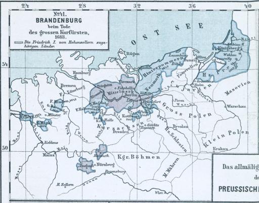 Das allmälige Wachsthum des preussischen Staates. No. 41 Brandenburg beim Tode des grossen Kurfürsten, 1688