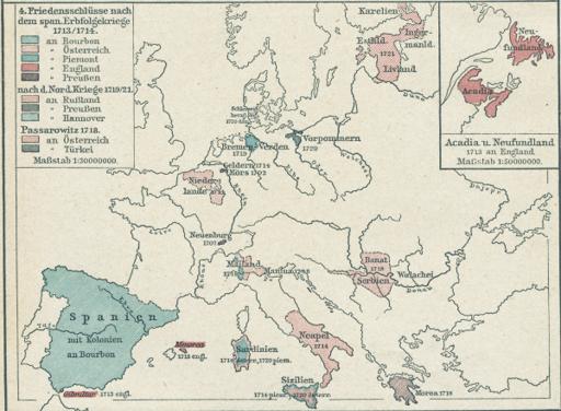 4. Friedensschlüsse nach dem span. Erbfolgekriege 1713/1714. nach d. Nord. Kriege 1719/21. Passarowitz 1718