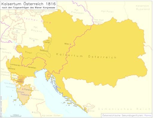 Kaisertum Österreich 1816 nach den Folgeverträgen des Wiener Kongresses